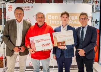 In de categorie onderzoekers ging de award naar Francesco Picchioni van de Faculty of Science & Engineering. Hij ontwikkelde een methode om rubber van oude autobanden duurzaam te recyclen. Met zijn project “Rubber Recycling” draagt hij bij aan het verminderen van afval en het hergebruik van industriële materialen. Voor zijn bijdrage ontvangt hij € 5.000, beschikbaar gesteld door de Rijksuniversiteit Groningen.