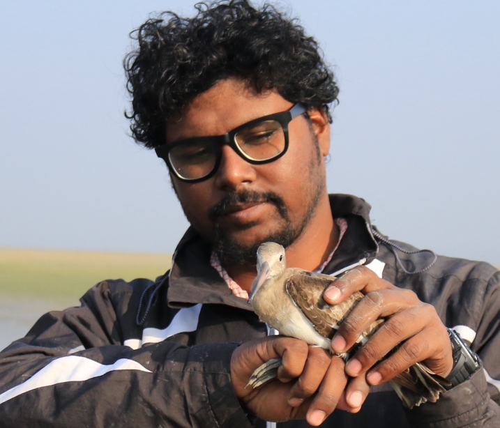 “Op de middelbare school vond ik het vak al leuk, dus besloot ik biologie te gaan studeren. Tijdens mijn bacheloronderzoek verloor ik mijn hart aan een geweldige vogelsoort, de Indische schaarbek. Wat een intrigerende en elegante vogel is dat: hoe hij vlak boven een wateroppervlak scheert, terwijl het puntje van zijn ondersnavel het water raakt. Zo werd ik ook verliefd op modder en water.” Hij lacht. “Maar niet op het ijskoude water dat jullie hier hebben. Hoe dan ook: ik heb jarenlang onderzoek gedaan naar deze Indische schaarbekken, ook tijdens mijn masterfase. Deze soort is bedreigd, onder meer door niet-duurzame visserij.”